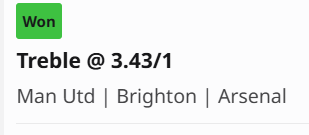 After wins for Fulham and Brighton, I only need Arse-Chelsea to match the old firm score to bag myself £600 on my treble. Currently 1-1 at HT and knowing my luck will stay that way, would be handy if it comes in though as need to fill up my car this week.